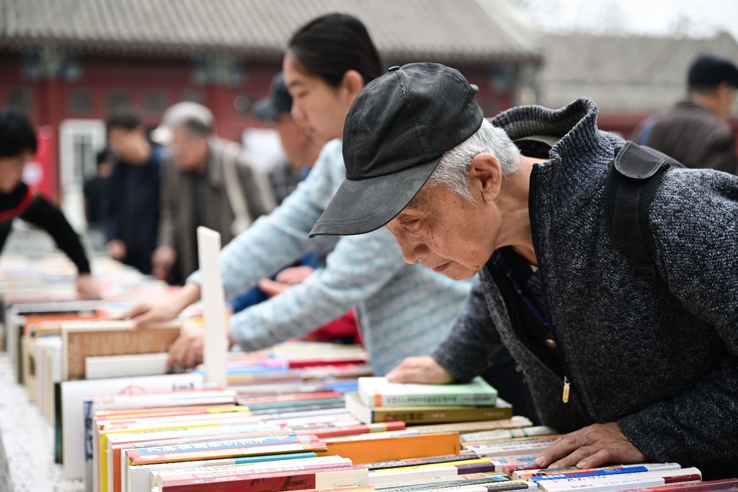 ▲2024年3月23日,市民在北京报国寺古旧书市选购图书。(图片来自中新社)