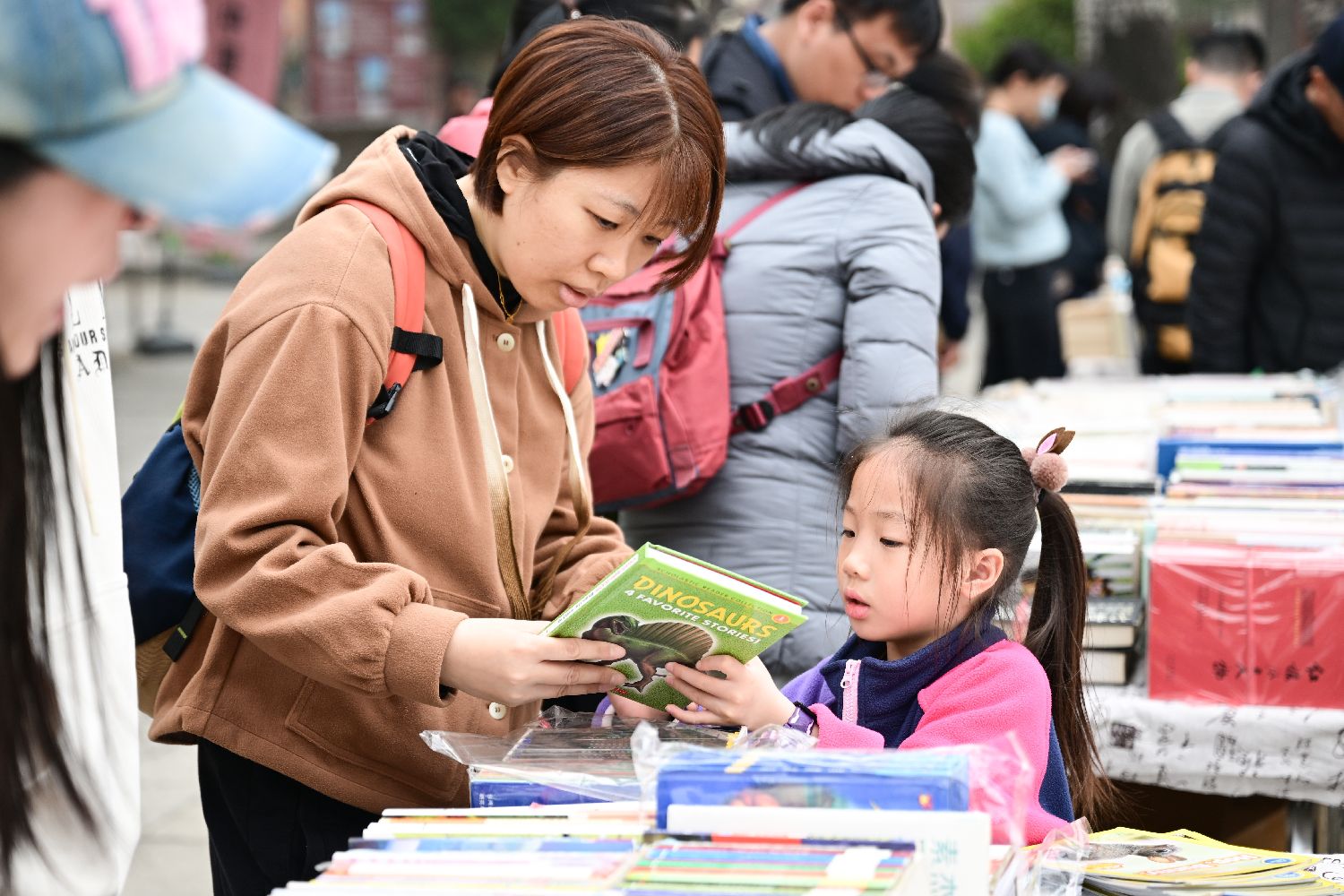 ▲2024年3月23日,家长带小朋友在北京报国寺古旧书市选购图书。(图片来自中新社)