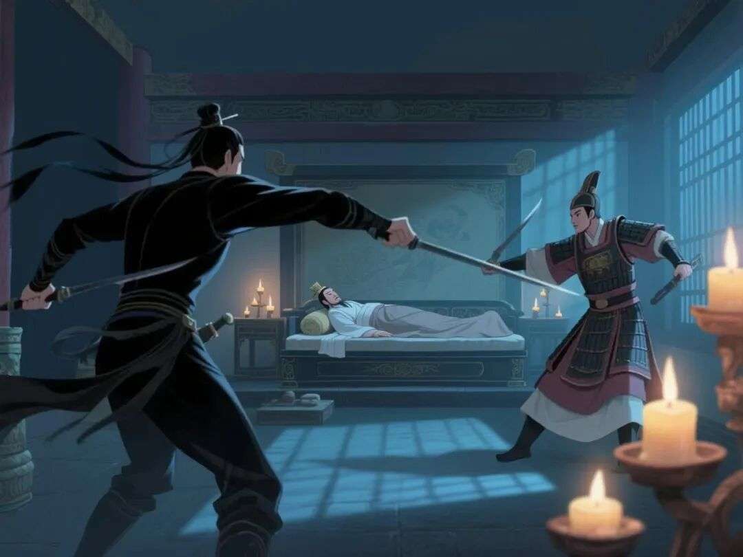 闻讯而来的侍卫一拥而上将马何罗制服。汉武帝自病榻惊起时,烛台已倾,残烛泪尽。一场弑君之祸消弭于无形,唯有檐下铁马在夜风中铮铮作响。