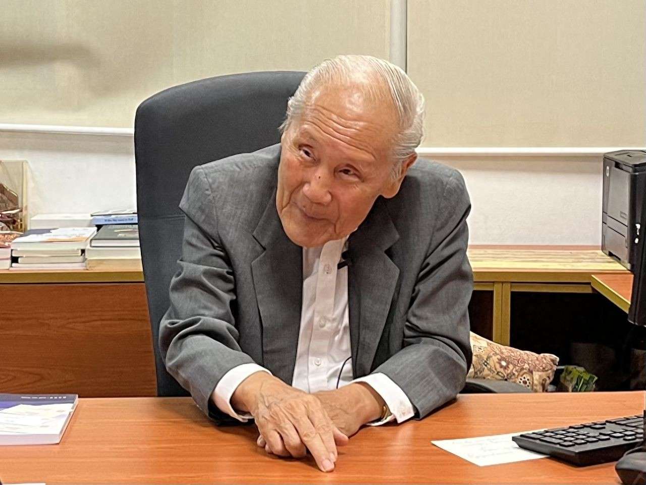 ▲王赓武在新加坡国立大学东亚研究所的办公室,接受南方周末采访。(娄晓希/图)