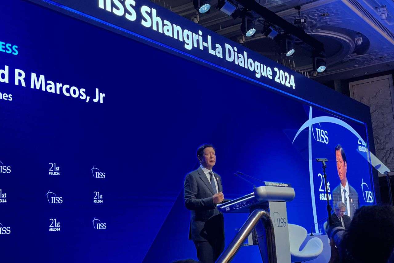 ▲2024年新加坡香格里拉对话会上,菲律宾总统小马科斯发表演讲。(娄晓希/图)