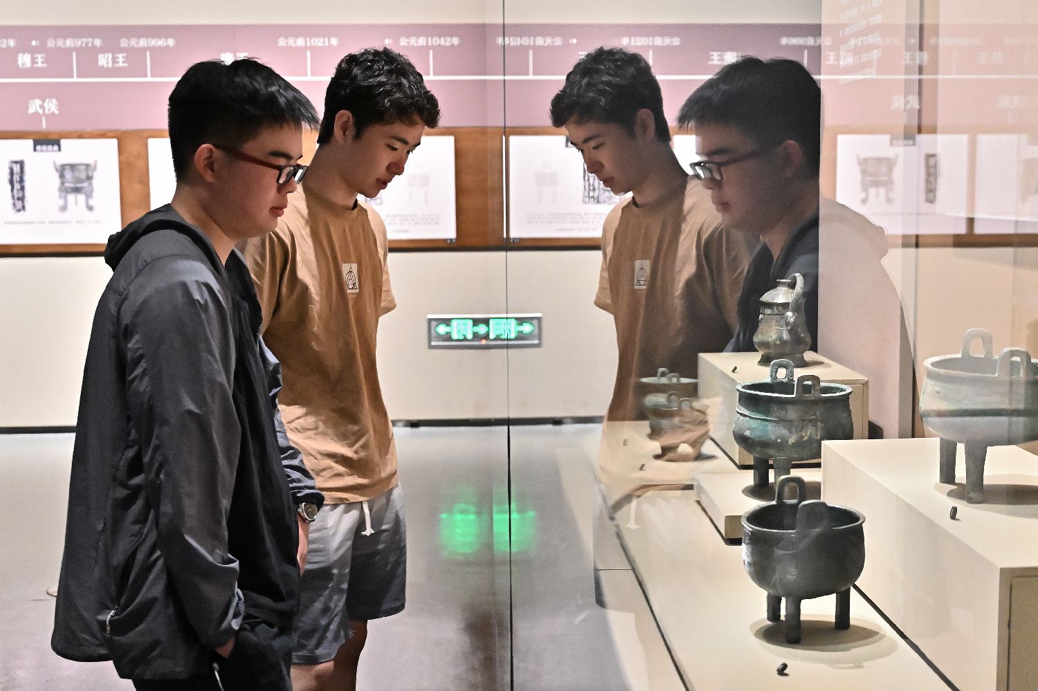 ▲9月9日,萧先诚和张育铭参观山西青铜博物馆。(图片来自中新社)
