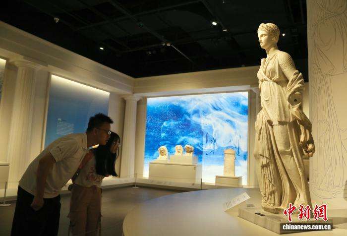 ▲2025年7月27日,四川省广汉市,在三星堆博物馆展出的“古希腊的旅程——希腊考古出土文物精品展”上,参观者观看展出的阿尔忒弥斯雕像。中新社记者 王磊摄