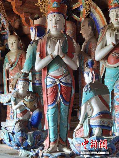 ▲佛光寺东大殿的唐代彩塑。中新社记者 胡健 摄