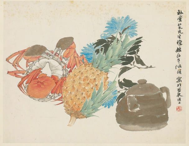 ▲清,任伯年《菠萝菊蟹》。(故宫博物院藏)