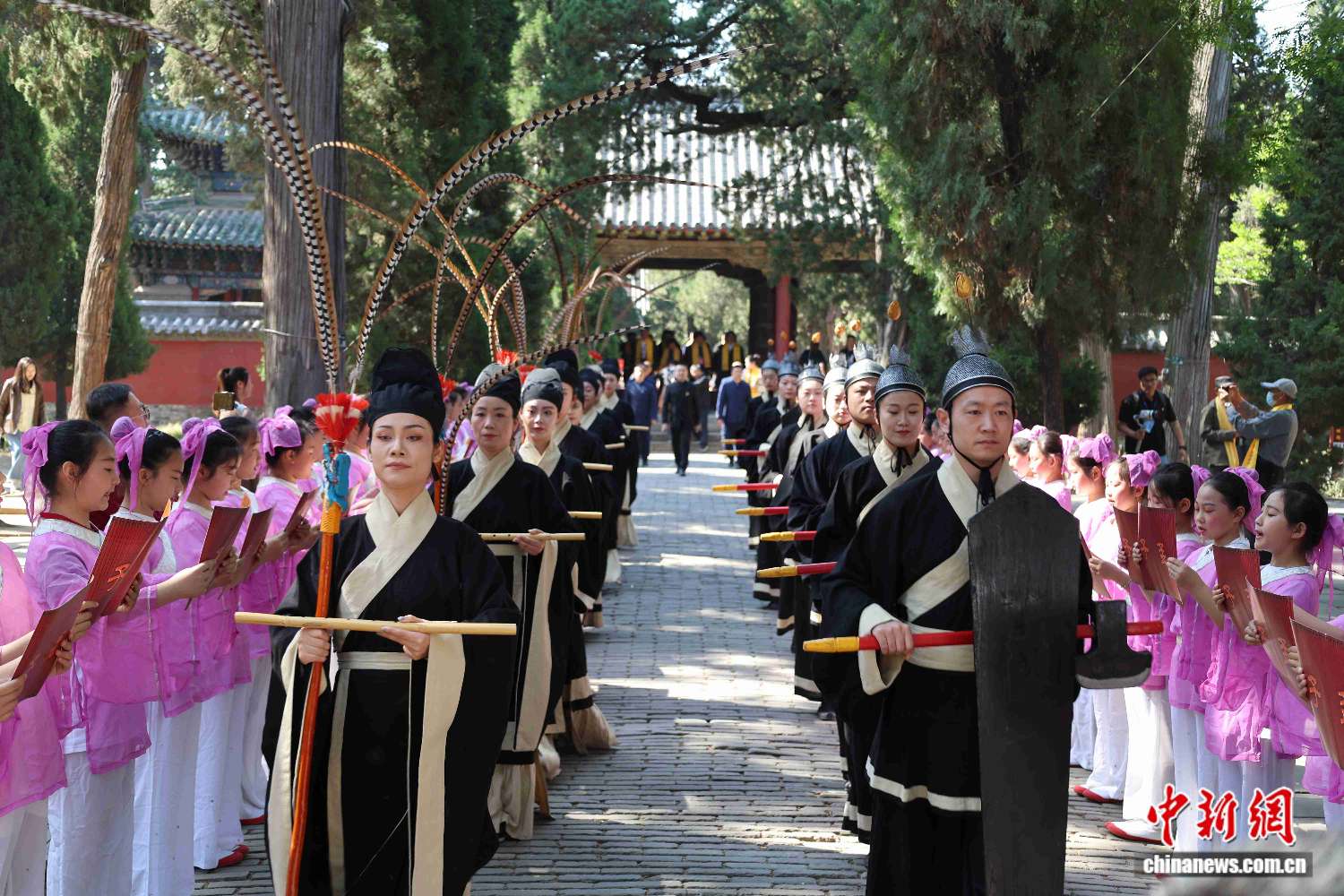 ▲2025年4月29日,2025纪念孟母孟子大典在山东邹城孟庙举行。图为文舞生和武舞生引领社会各界人士向亚圣殿前行。中新社记者 王采怡 摄