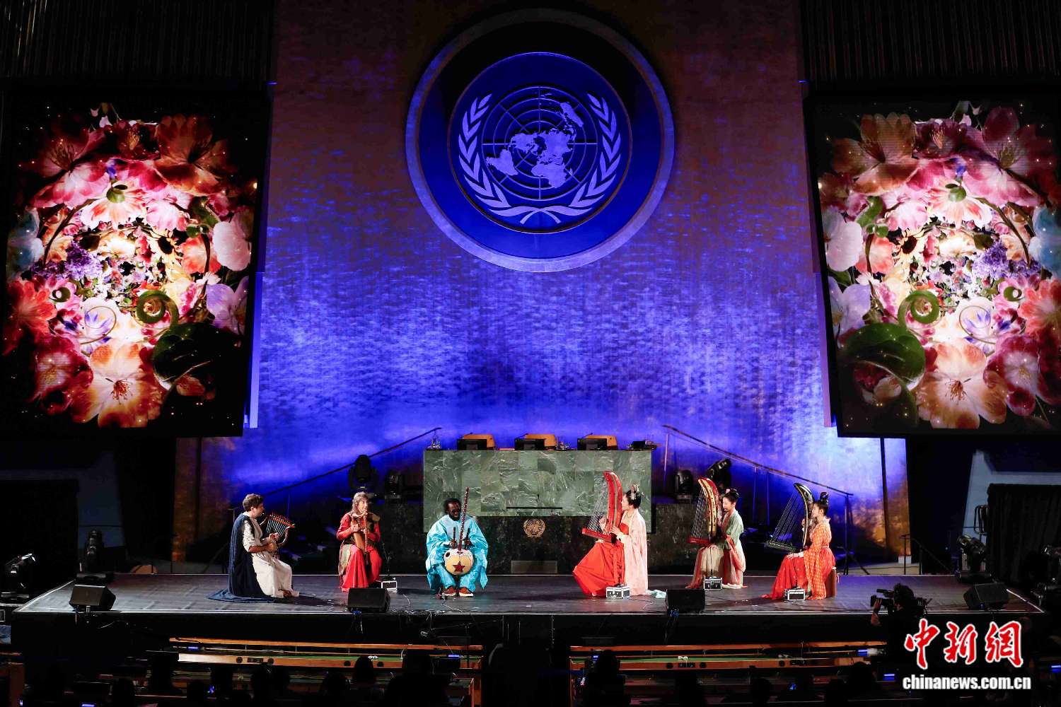 ▲当地时间2025年6月9日,中国在纽约联合国总部举办“文明对话国际日”主题活动。图为来自中国、美国、希腊、塞内加尔的艺术家在“跨越山海的文明对话”文艺演出上表演器乐合奏《美美与共》。中新社记者 廖攀摄