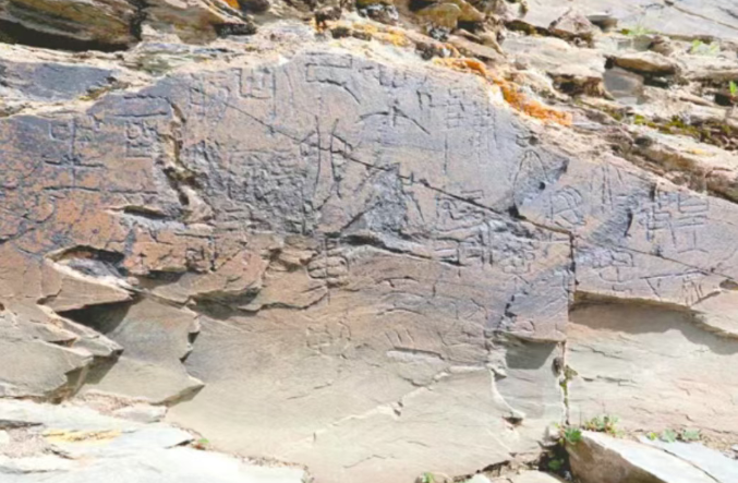 ▲“尕日塘秦刻石”石刻(图片来源:中国新闻网)