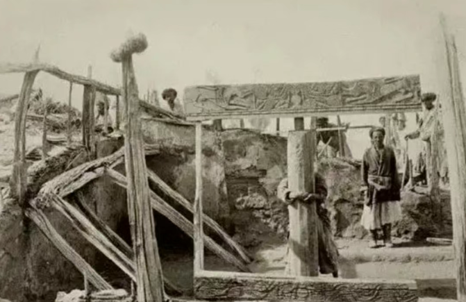 ▲斯坦因带队盗掘尼雅遗址,由此发现了震惊世界的精绝古城(图片来源:大英博物馆)