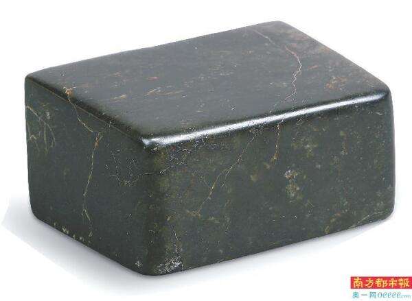 ▲墨玉方形枕,唐代。