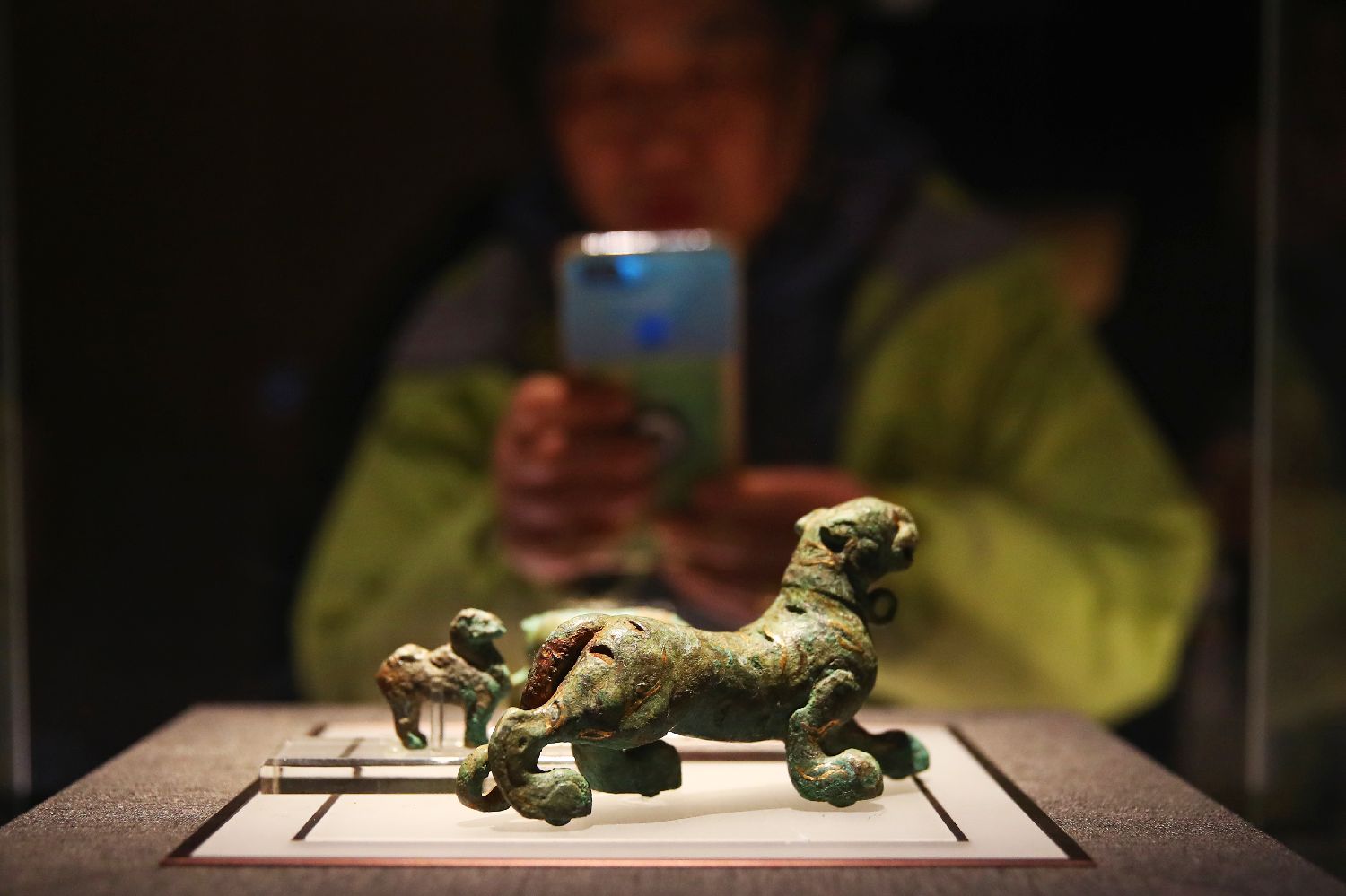 ▲2月6日,江西南昌,游客在拍摄南昌汉代海昏侯国遗址博物馆展出的青铜动物玩具。(图片来自中新社)