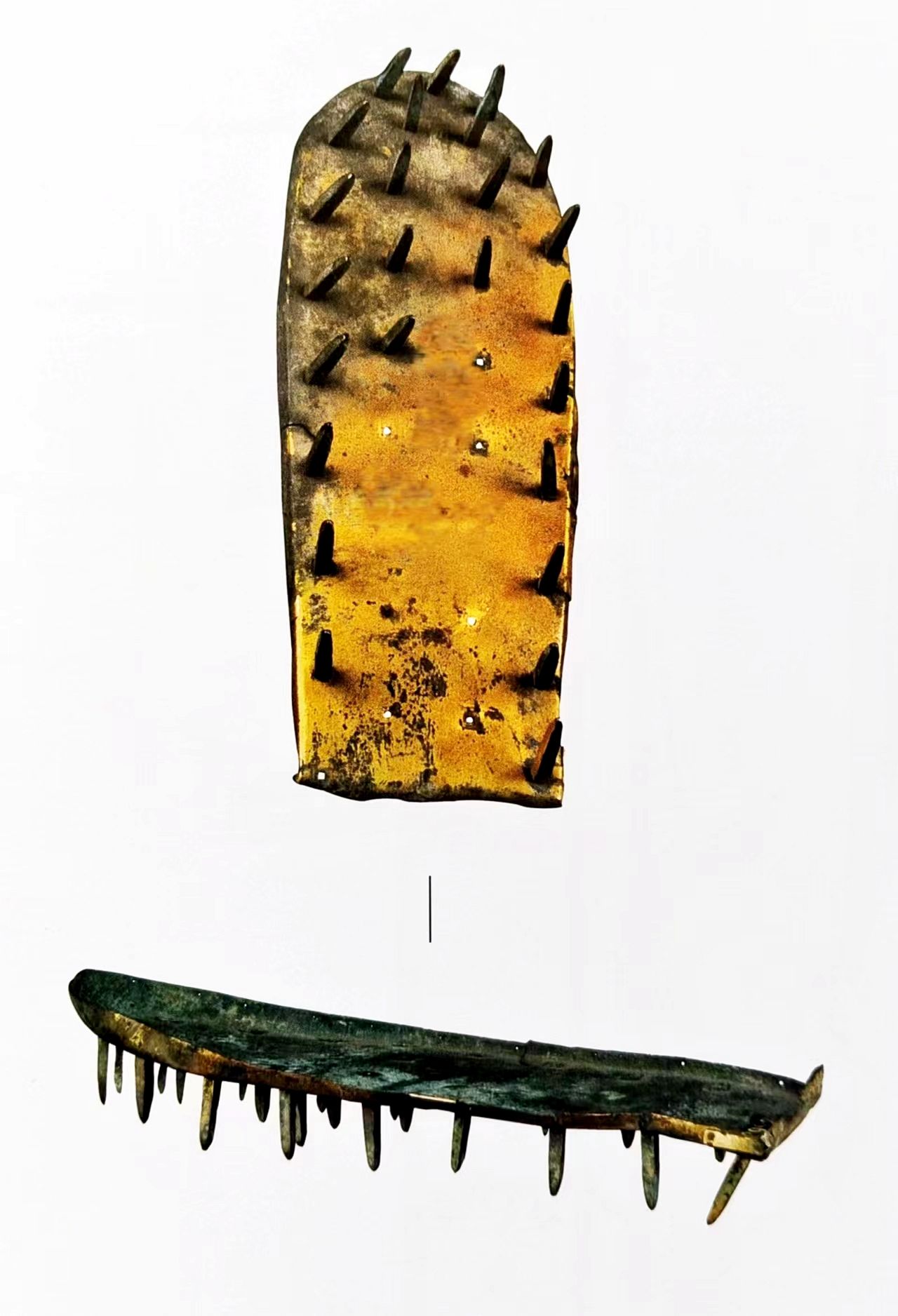 ▲高句丽铜鎏金钉鞋。(集安市博物馆藏)
