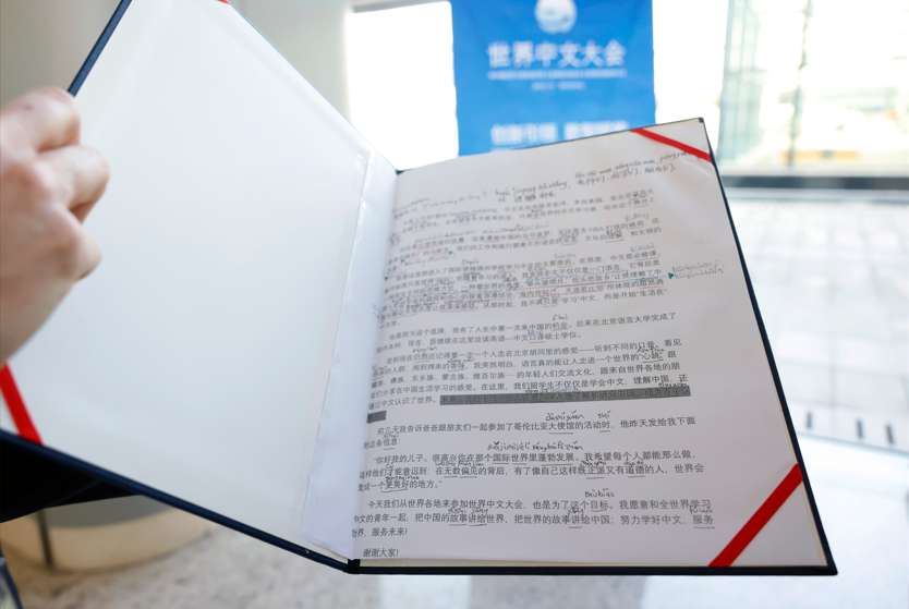 在11月14日开幕的2025世界中文大会上,这篇布满批注的演讲稿,见证了一名中文学习者的热忱。