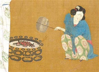 ▲宋徽宗摹本《捣练图》中的炭炉(局部 唐 张萱)。(作者供《北京青年报》)