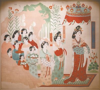 ▲都督夫人礼佛图(局部),莫高窟第130窟南道南壁。(图片来自《北京青年报》)