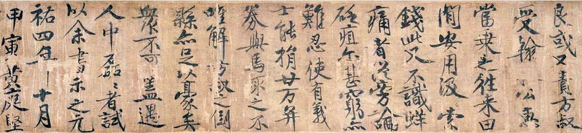 ▲《黄庭坚书苏东坡马券后赠李方叔真迹卷》(局部)
