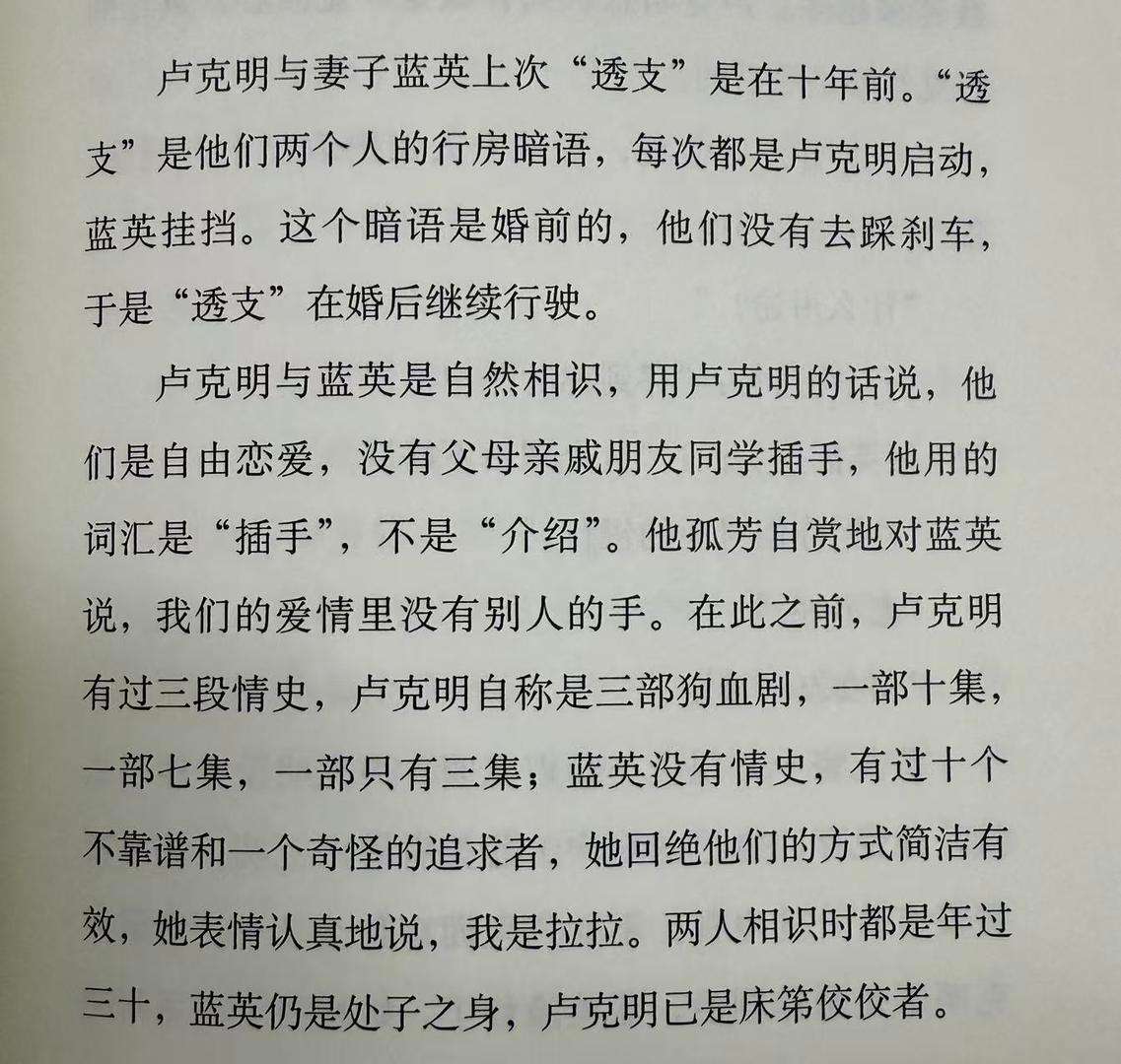 小说开篇——卢克明与妻子蓝英上次“透支”是在十年前——包含了不少信息,特别要留意“透支”二字。