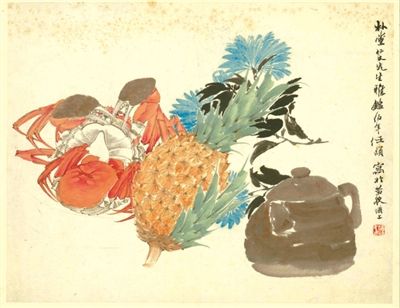 ▲清,任伯年《菠萝菊蟹页》。(图片来自《北京青年报》)