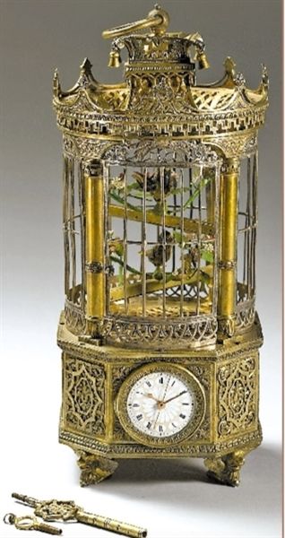 ▲清,雀笼式钟,笼顶有数个菠萝形装饰。(图片来自《北京青年报》)