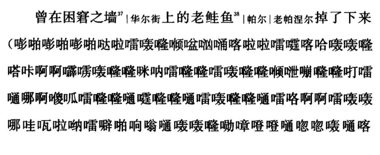 乔伊斯写《芬尼根的守灵夜》不仅仅是做一个文字游戏,它要打破语言的单一模式,允许各种不同的意义来杂交,这才是他制造那些词的动机,变成一词多义的混成词。在翻译中如何体现它只是初步的工作,用很笨的方法加注释,使得多义保留下来。也因此采用了特殊的排版,选择其中一种解释用小四字号,其他解释用小五字号跟在后面,相当于我在不断地提醒读者,这个字不是只有一个含义,双数页的正文有大字和小字,单数页又有注释。这样的排版方法,是倪为国想出来的,我很喜欢。第一卷出来的时候,就有人抱怨这样的排版读起来不顺畅,但《芬尼根的守灵夜》原版你读着就不顺畅。