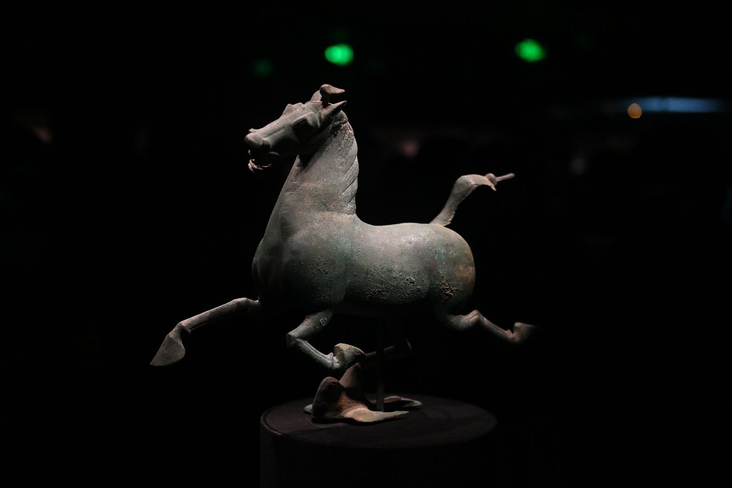 ▲出土于甘肃省武威市雷台汉墓的铜奔马。(图片来自中新社)