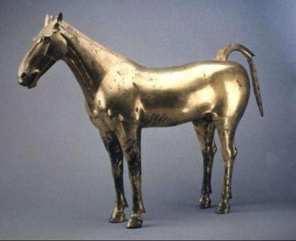 ▲汉武帝茂陵出土的西汉鎏金铜马。(图片来自茂陵博物馆)