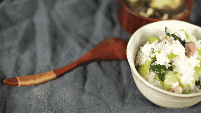 与糯米、生姜粒一起焖煮