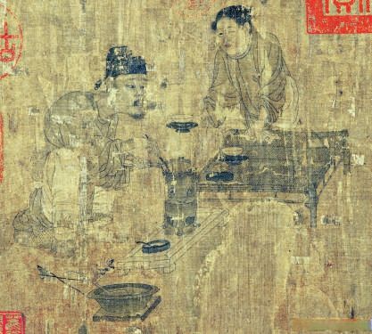 ▲唐代《萧翼赚兰亭图》(局部)中的茶铫。(图片来自《北京晚报》)