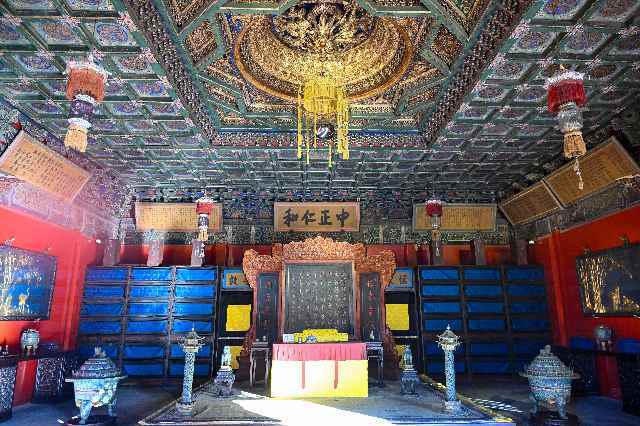 先看养心殿正殿,恢复的是雍正以来举行小朝会时的样貌布置。宝座上方,雍正御笔“中正仁和”匾高悬。“中正”寓意帝王应秉持公正无私、不偏不倚的执政原则。“仁和”寓意仁爱、和谐,是对人性的根本追求。