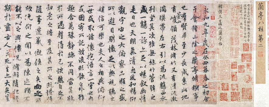 ▲传唐褚遂良摹本《王羲之行书兰亭序》卷。(故宫博物院藏)