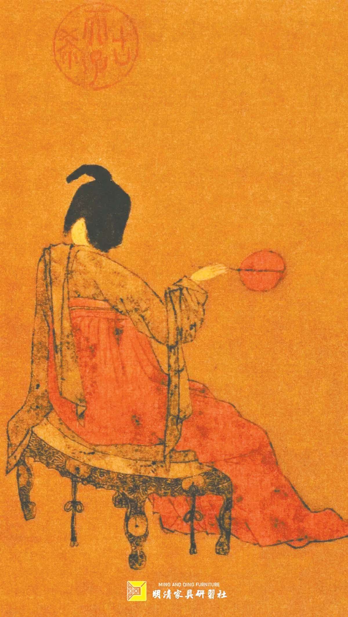 由于没有唐代月牙凳实物流传于世,所以我们对它的了解仅限于一些传世的绘画著作中。在唐朝周昉《挥扇仕女图》《演乐图》、张萱《捣练图》及《唐人宫乐图》等很多绘画作品中都可一睹它的真容。它的造型风格与其使用者——体态丰腴的贵妇形象浑然一体,将盛唐华丽大气、兼容并包的美学观发挥得淋漓尽致。