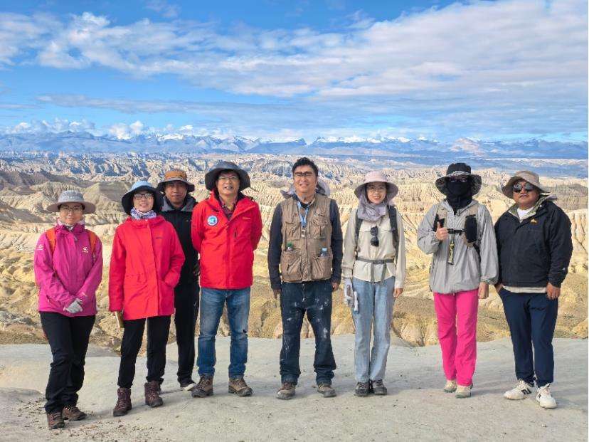▲邓涛研究员(左四)及其团队在青藏高原科考。(图片来自受访者供图)