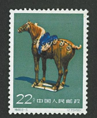 新中国第一套以“马”为主要表现对象的邮票,是1961年11月发行的《唐三彩》特种邮票。这套邮票共8枚,其中4枚以马为主题。