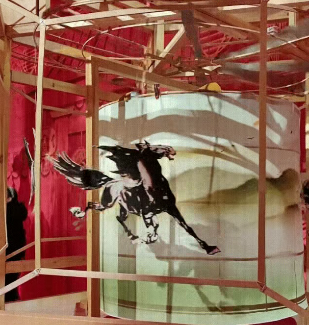 ▲济南大明湖南岸“穿越未来”的赛博飞马。(图片来源:“济南都市频道”微信公众号)