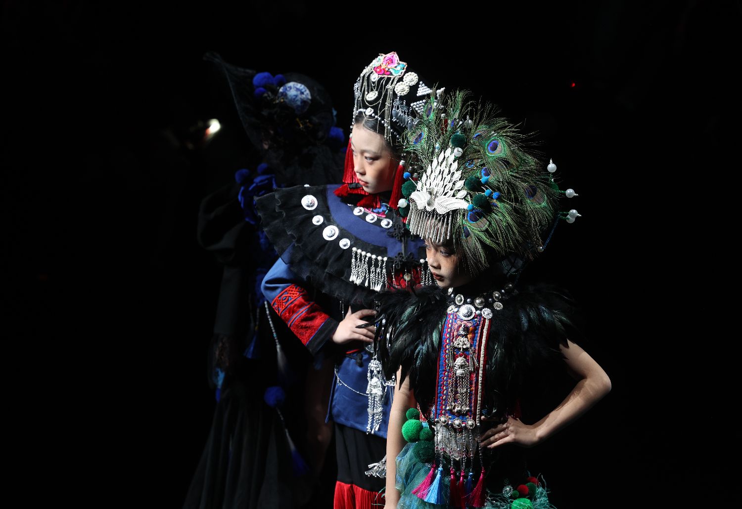 3月21日,小模特们身上的服饰与头饰极具民族韵味。李国庆摄