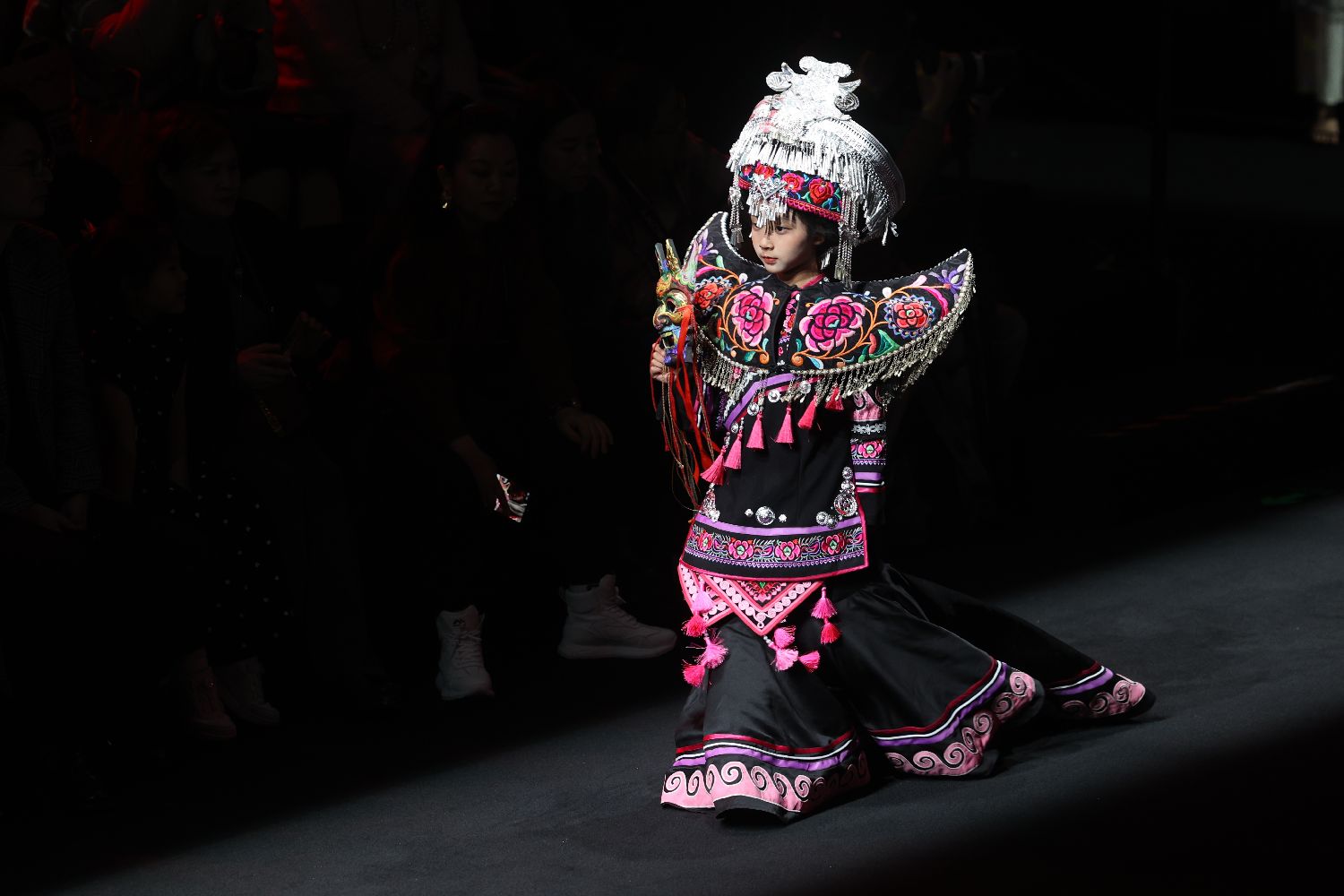 3月21日,小模特的展示让彝绣纹样在秀场上讲述山野故事。李国庆摄