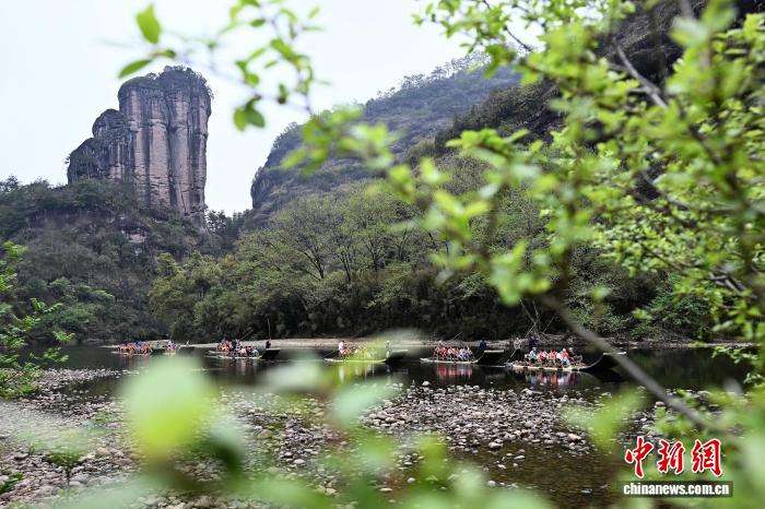 ▲2026年3月22日,福建南平,游人乘坐竹筏游览武夷山国家公园九曲溪。中新社记者张斌摄