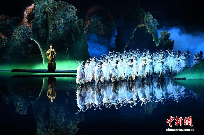 ▲3月22日晚,大型山水实景舞台剧《月映武夷》在福建南平武夷山上演。该剧融合音乐,舞蹈等表演形式,以朱熹成长故事为主线,展现八闽文化与武夷山水,已成为当地文旅新名片和朱子文化新IP。中新社记者吕明摄