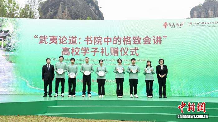 ▲2026年3月22日,第三届武夷论坛在福建南平武夷山开幕。图为参与论坛配套活动“武夷论道:书院中的格致会讲”高校学子礼赠仪式。(图片来自中国人民大学供图)