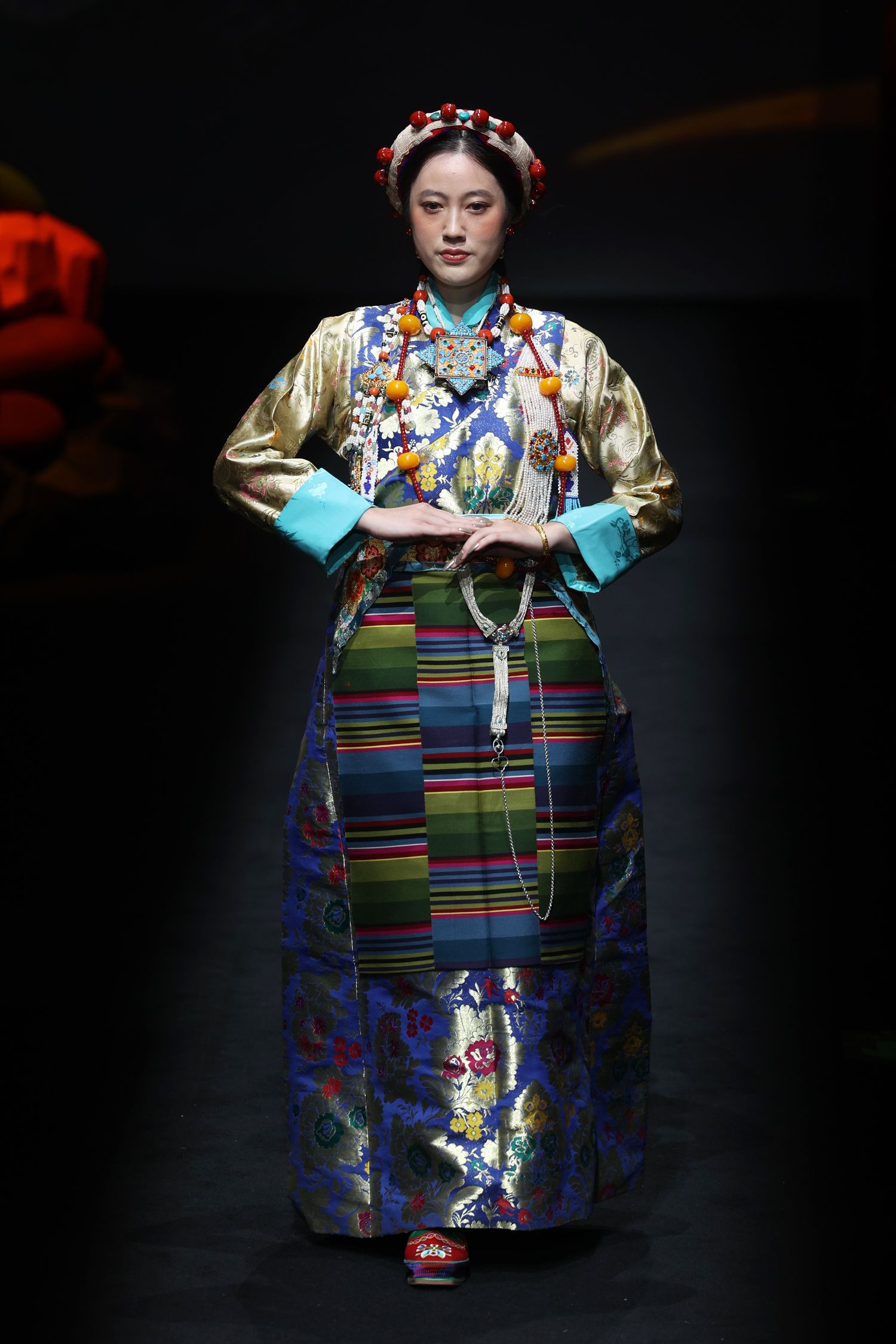 3月26日,模特身穿民族特色服饰走秀上T台。李国庆摄