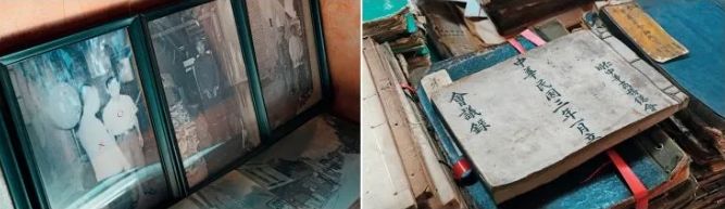 ▲左图:仁川中华会馆摆放的华侨抗日志士照片 右图:仁川华侨协会收藏的华侨档案文献本版(图片来自中国新闻周刊)