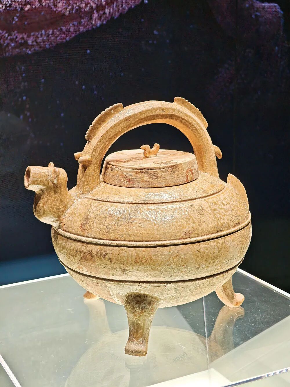 “有瓷之初”展上的原始瓷提梁盉。(图片来自新华每日电讯)