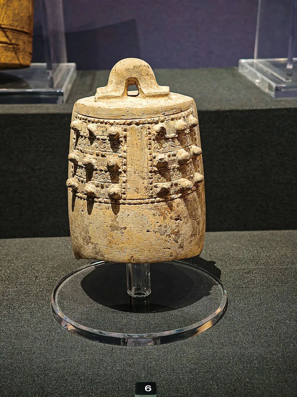 ▲“有瓷之初”展上的原始瓷编钟。(图片来自新华每日电讯)