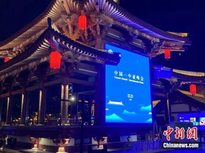 ▲2023年5月11日,西安,曲江池遗址公园夜色阑珊。中国-中亚峰会宣传牌点亮,峰会即将在西安召开。李溪龙 摄