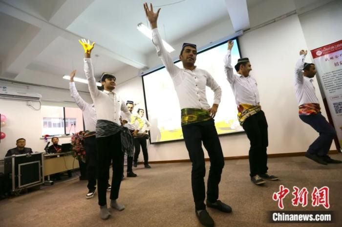 ▲2016年,首届“丝绸之路文化使者”特训营在西安启动。图为来自乌兹别克斯坦的留学生在启动仪式上表演舞蹈。张远 摄