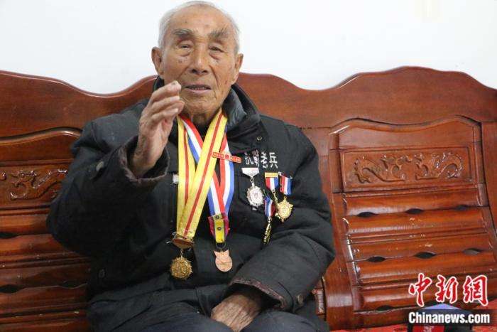 ▲2024年3月5日,年逾百岁抗日老兵老兵罗远耀向记者讲述抗战杀敌故事。(图片来自中新网)