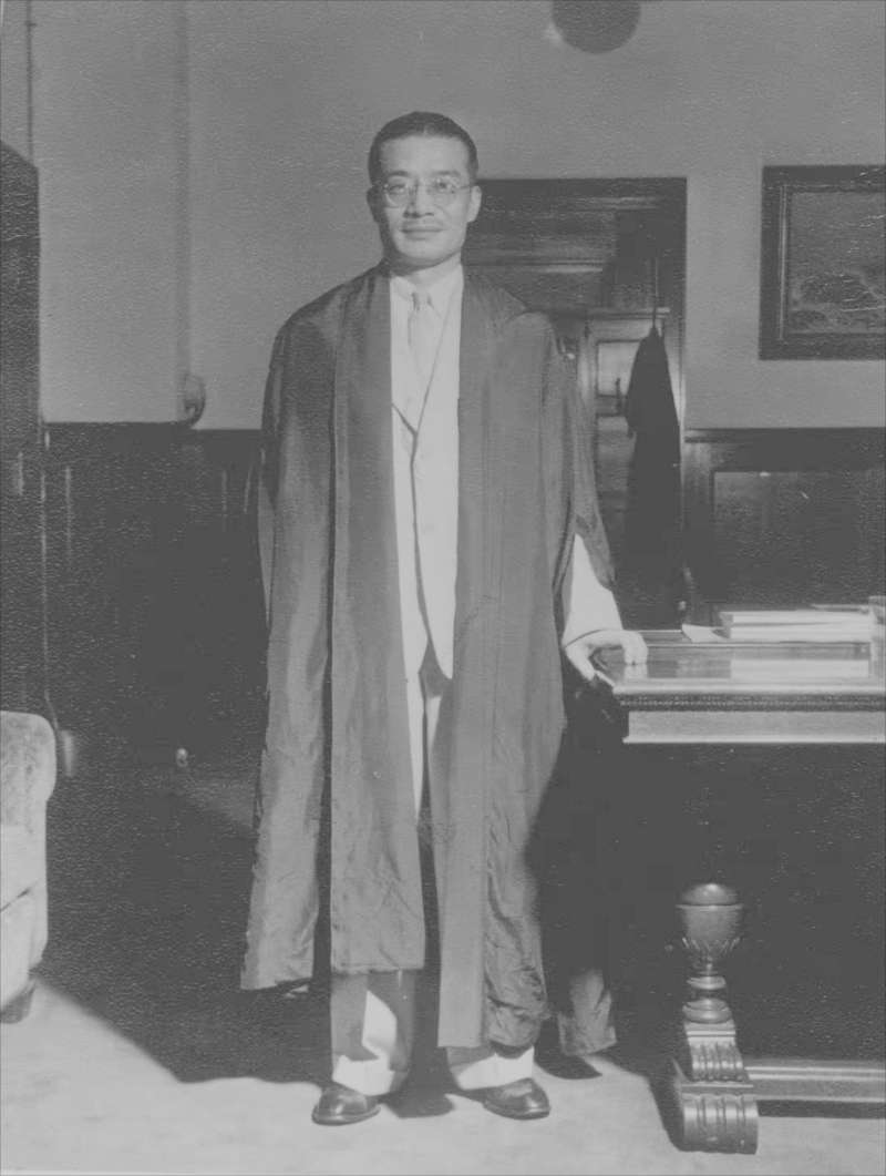 ▲1945年东京审判期间,梅汝璈身着法袍留影。(中新网资料图片)