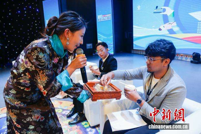 ▲2024年8月18日,“同饮一江水光影耀澜湄”2024澜湄国际影像周在青海省玉树藏族自治州玉树市正式启动。图为来自澜沧江-湄公河流域国家的6名青年代表品尝玉树酸奶、奶酪等当地特色农畜产品。中新社记者马铭言摄