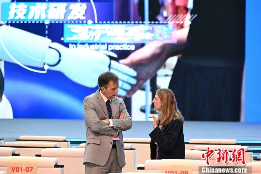 ▲2025年7月26日,2025世界人工智能大会暨人工智能全球治理高级别会议在上海开幕。图为与会嘉宾在会前交流。中新社记者 田雨昊 摄