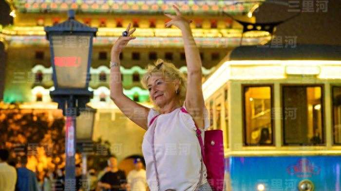 ▲2025年9月10日,北京前门大街,外国游客感受古都夜韵。